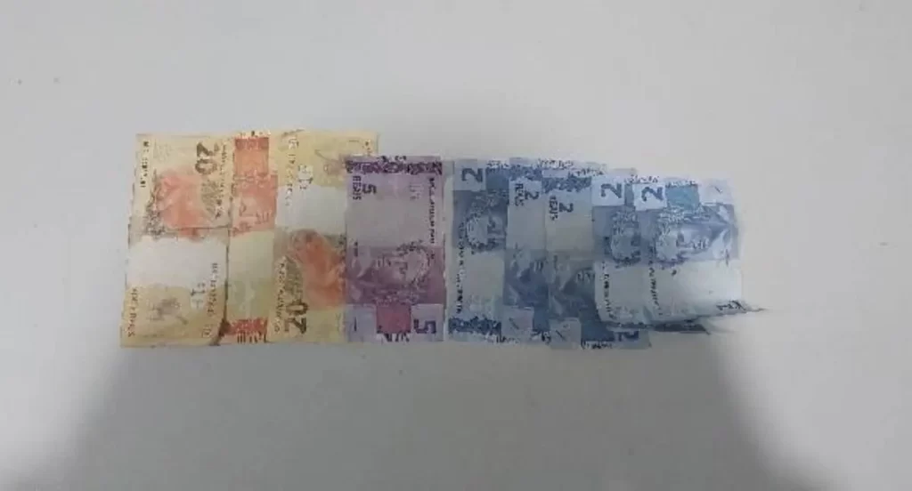 O detido apresentava escoriações no rosto, nariz e pé, além de estar totalmente molhado devido à passagem pelo córrego. Com ele, os policiais recuperaram o dinheiro roubado e apreenderam vestimentas e acessórios usados no crime. O infrator foi levado ao Hospital Ana Adelaide para receber cuidados médicos e depois encaminhado à Central de Polícia, onde foi autuado em flagrante por roubo e resistência.