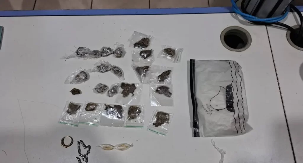 Durante a abordagem, a bolsa foi recuperada e, no interior, os policiais encontraram 22 invólucros de substância análoga à maconha e dois invólucros semelhantes ao crack, todos embalados para comercialização. Questionado, Leonardo confessou que a droga era de sua propriedade e destinada à venda.