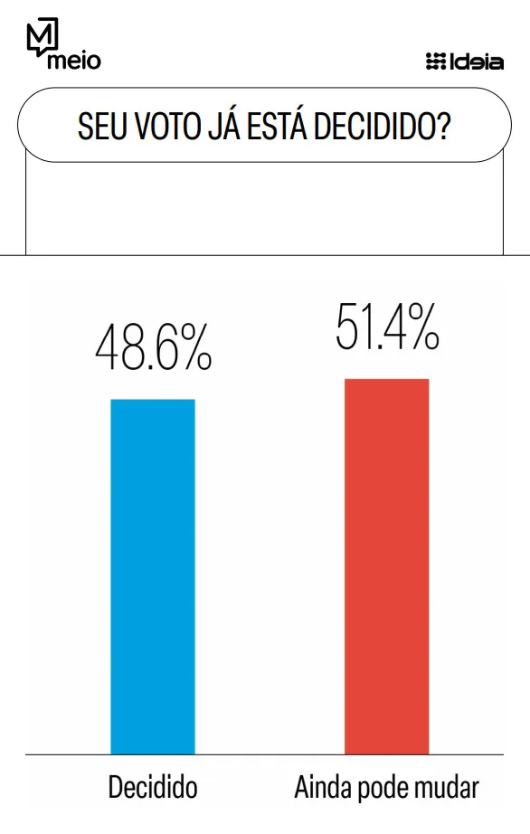 Outro dado que chama atenção é o alto nível de indefinição do eleitorado. Segundo a pesquisa, 51,4% dos entrevistados afirmam que ainda não decidiram em quem votar para presidente da República, o que reforça o cenário de incerteza e indica que a disputa segue aberta, com espaço para mudanças ao longo da campanha.