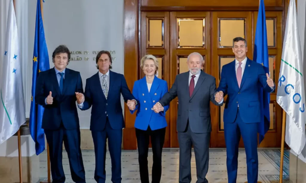 Os chefes de Estado do Mercosul e a representante da União Europeia (UE), Ursula von der Leyen, anunciaram, nesta sexta-feira (6), que foi firmado o acordo de livre comércio para redução das tarifas de exportação entre os países que compõe esses mercados. As negociações se arrastavam há 25 anos.