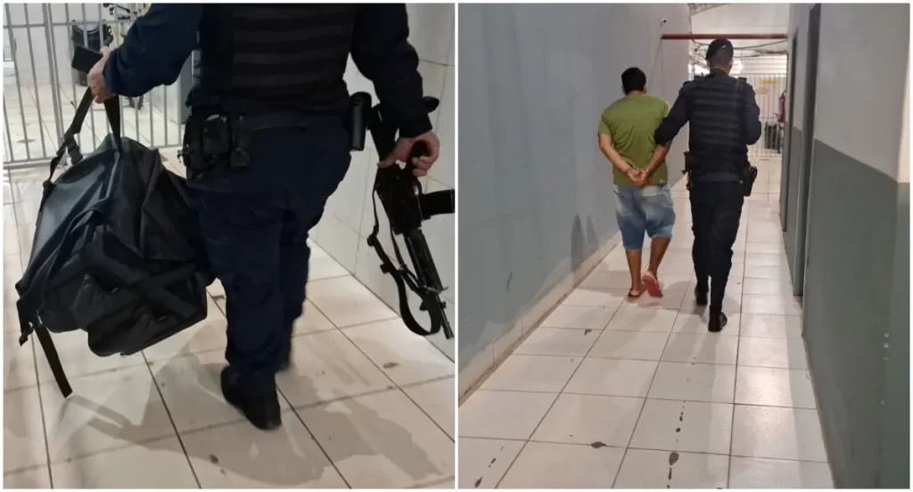 Diante da situação, o suspeito recebeu voz de prisão. Foi necessário o uso de algemas, segundo a polícia, para garantir a segurança da equipe e evitar possível tentativa de fuga.