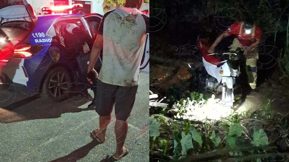 Um motociclista de 27 anos foi preso na noite de domingo (7) após perder o controle da motocicleta que conduzia e cair em um córrego na Rua das Rosas, bairro Cohab, em Porto Velho (RO). A ocorrência mobilizou equipes do Batalhão de Trânsito e do Corpo de Bombeiros, que constataram ferimentos leves na vítima.