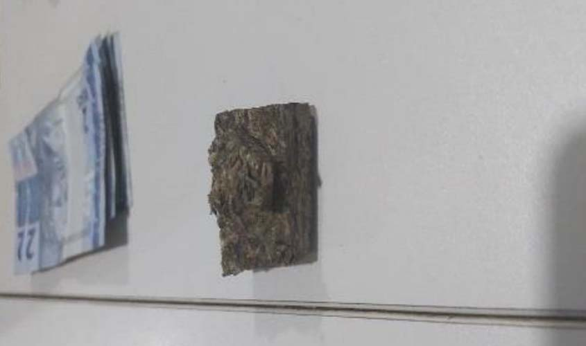 A equipe transitava pela Rua São João quando avistou duas pessoas em frente a uma residência. Ao se aproximar, os policiais perceberam forte odor de maconha, o que motivou a abordagem preventiva. Durante a revista, a guarnição observou, pela janela do imóvel, porções de substâncias aparentando ser maconha e crack, além de dinheiro trocado e embalagens comumente usadas no preparo e fracionamento de drogas.