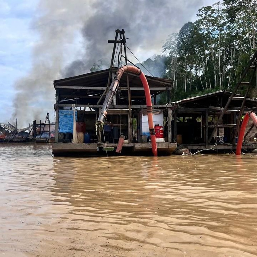 As embarcações, entre dragas e balsas de médio e grande porte, estavam sendo usadas para retirar ouro do rio de forma ilegal. Segundo os agentes, o esquema era bem estruturado e tinha capacidade para operar em larga escala, diferente dos garimpos artesanais. Como não era possível remover os equipamentos do local, eles foram inutilizados ali mesmo.