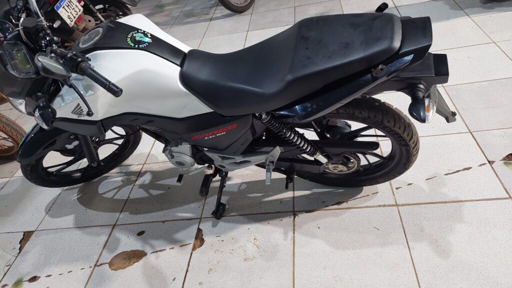 Uma motocicleta modelo CG 160 Cargo, de cor branca com preta e sem placa, também foi apreendida, pois, segundo as denúncias, era utilizada para a entrega de drogas na modalidade delivery.