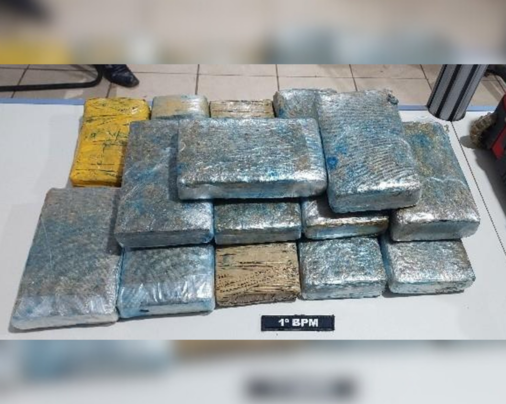 No local, a equipe identificou uma passageira com as características repassadas, que desembarcava de um ônibus interestadual portando bagagem compatível com a denúncia. Durante a abordagem e busca na mala, foram localizados 16 tabletes de substância com características análogas à maconha, totalizando aproximadamente 16 quilos do material ilícito.