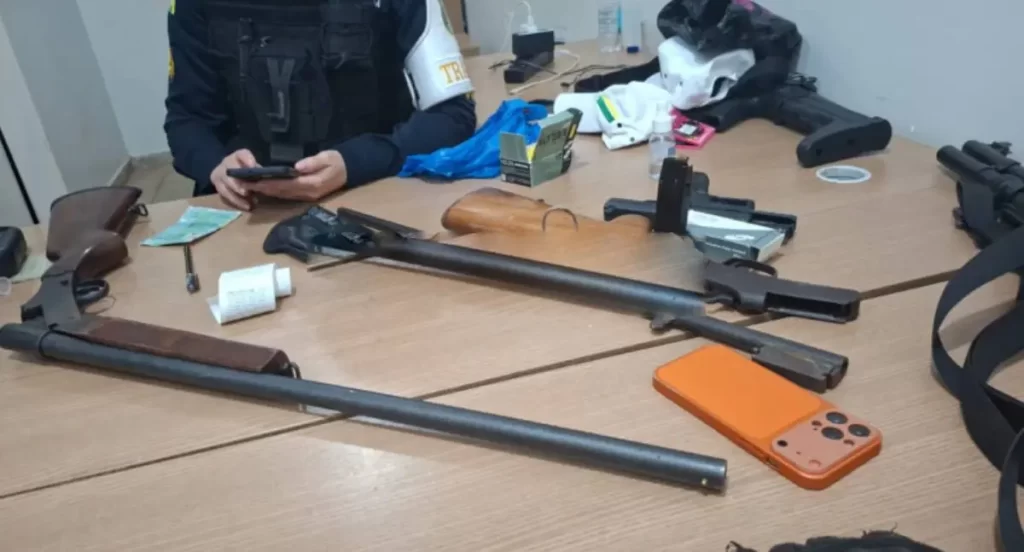 Durante a revista no interior do veículo, os policiais encontraram um arsenal composto por uma pistola calibre 9mm municiada e duas espingardas, além de diversas munições de reserva. Embora parte do armamento possuísse documentação, uma das espingardas estava com o registro vencido desde o ano de 2012. Além das armas, os militares localizaram uma ave silvestre abatida, da espécie mutum, o que configurou crime contra a fauna.