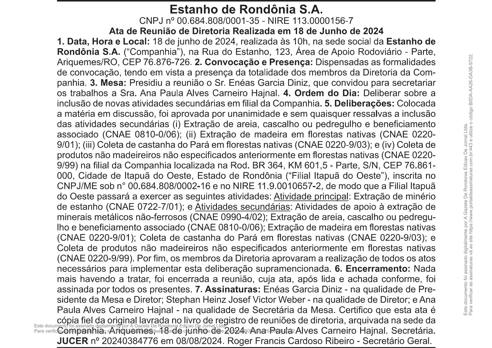 PUBLICAÇÃO ERSA S.A. ATA REUNIÃO