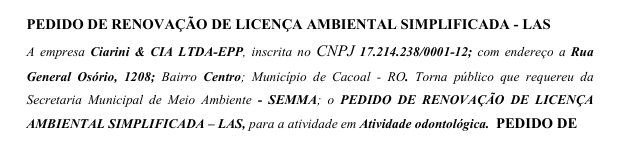 RENOVAÇÃO DE LICENÇA AMBIENTAL SIMPLIFICADA – LAS – CIARINI & CIA LTDA-EPP