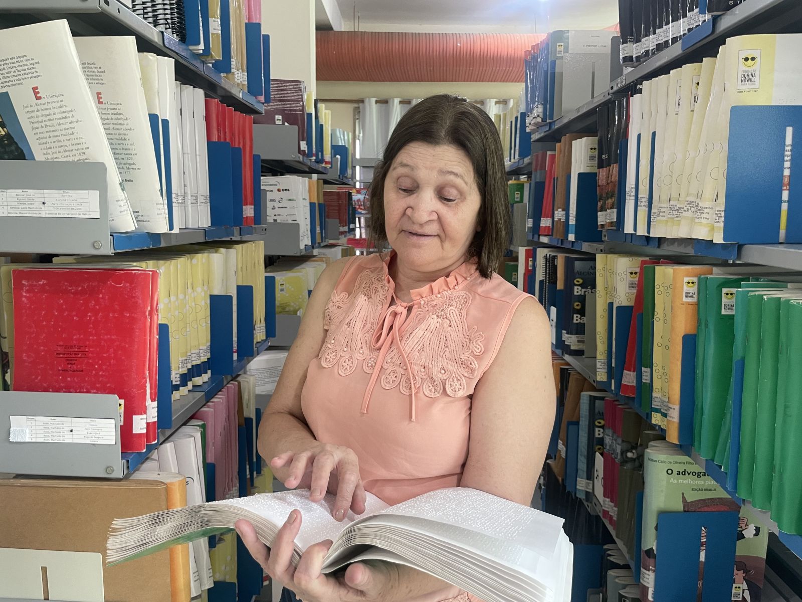 “Há oito anos, com 57 anos de idade, tive que buscar forças para me superar e sair da depressão causada pela perda da visão, pois as escolas não quiseram me aproveitar nesse processo de inclusão no mercado de trabalho, foi uma época muito difícil, mas graças a um amigo que me trouxe aqui na biblioteca, pude aprender o braile e mais tarde, fui convidada a trabalhar ensinando outras pessoas a superar seus desafios, assim como eu”, lembra emocionada.