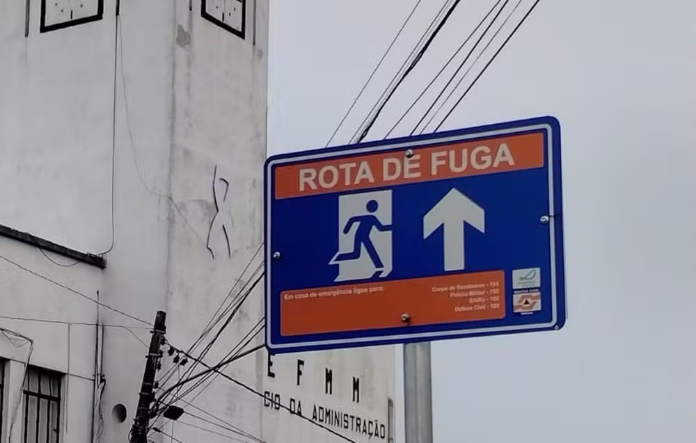 Em casos de possíveis incidentes, a sirene toca e as placas indicam rotas de fuga e pontos de encontro seguros. Cada uma terá um QR Code com informações e orientações de como proceder em caso de uma eventual emergência.